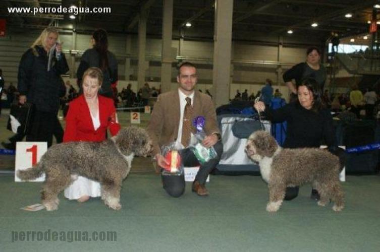 Los juicios corrieron a cargo del croata Sr. Lemo Niksa, en la foto con los mejores de raza, macho y hembra ambos de manto marrón, acollarados, pechiblancos y botineros.